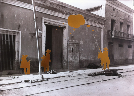 Esta serie surge de una apropiación de fotografías del México revolucionario, utilizando el collage con fragmentos de historietas de bolsillo, que son un registro de la cultura popular actual, en contraste con la narrativa idealista de las fotografías de la revolución. Esta manera de satirizar estos documentos, tiene como fundamento encontrar hilos conductores entre la memoria histórica, a través del documento, y nuestro entorno cotidiano, como una forma de re contextualizar y transformar los discursos que damos por hechos.
