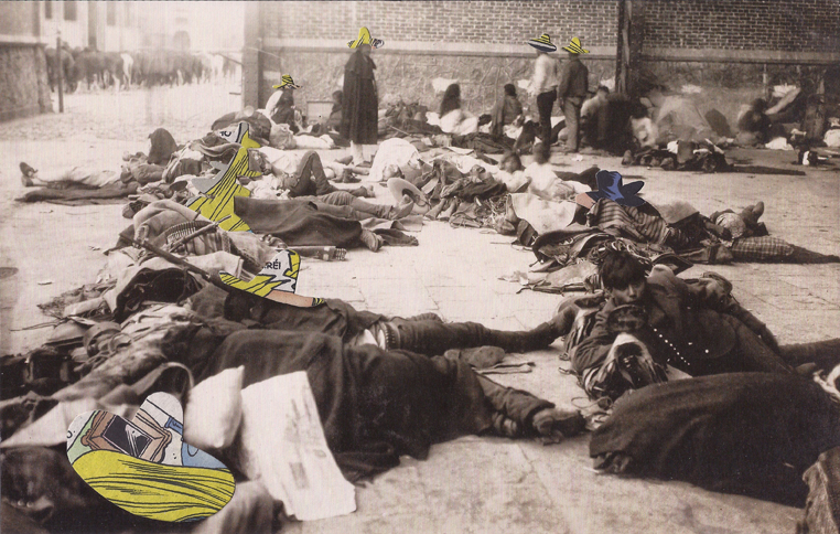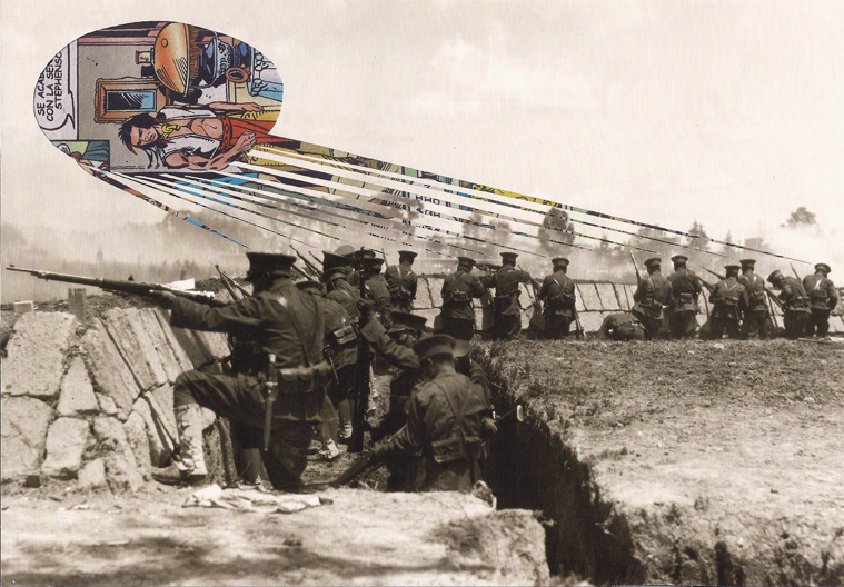 This series comes from an appropriation of revolutionary Mexico photographs, using collage with fragments of pocket comics, which are a popular culture register, in contrast to the idealist narrative of the revolutionary photographs. This way of satirizing the documents, is based on finding threads between historical memory, through the document, and our daily environment, as a way of re contextualize and transform the discourses that we assumed by facts.